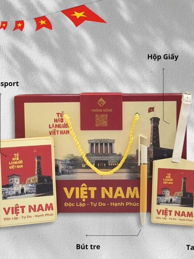 - Thông tin chi tiết các bộ sản phẩm: - Tên sản phẩm: Bộ quà tặng DL02 Tự Hào Việt Nam - Ví đựng passport - Bút bi tre phối lúa mạch - Hộp giấy cao cấp + Túi giấy có quai xách - In ấn, thiết kế theo yêu cầu khách hàng - Báo giá tham khảo cho số lượng…