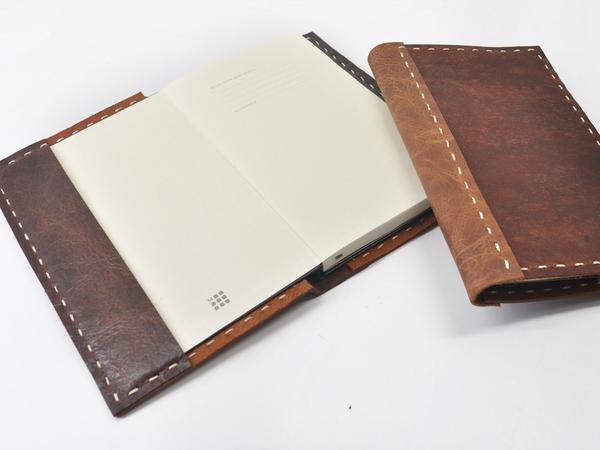 Những tấm bìa da được may cẩn thận với nhau, dập nổi hoặc chìm tên hoặc dòng chữ của bạn để làm cho cuốn sổ trở nên độc đáo hơn