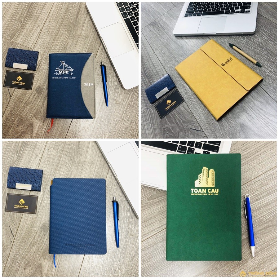 – In logo lên sổ tay da thật, simili, pu