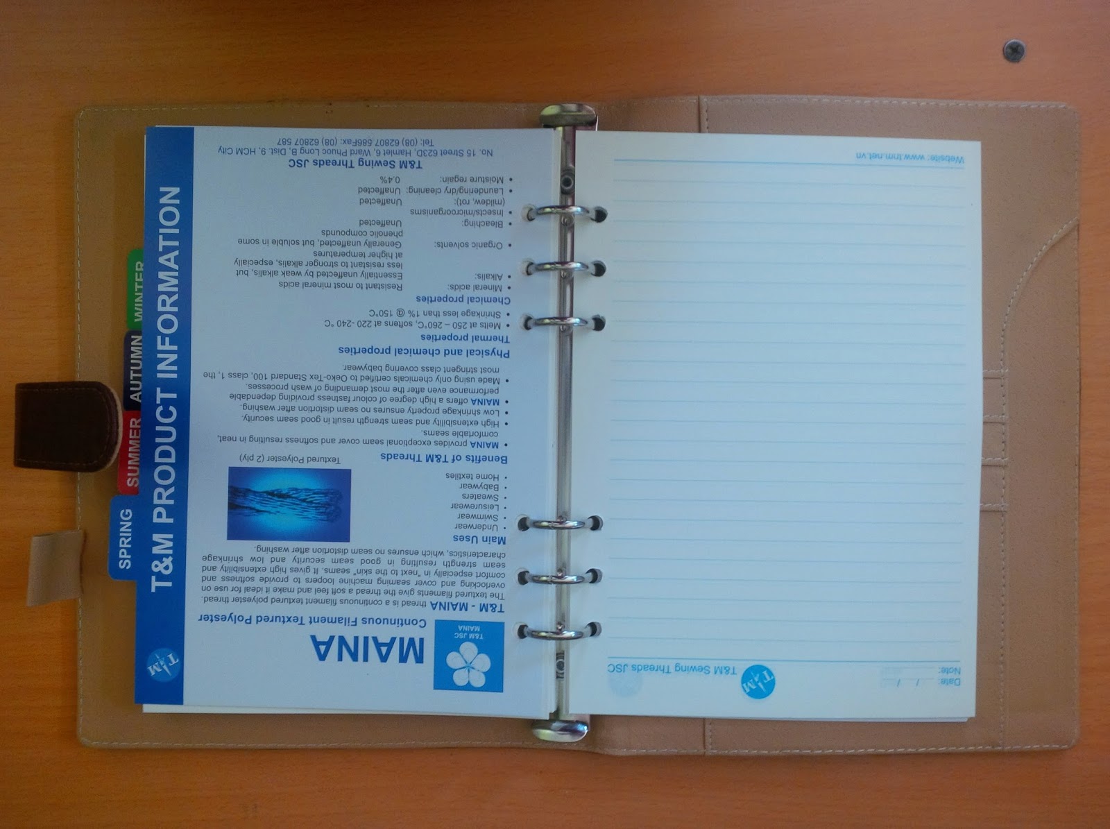 Mặt trong sổ được in các tờ C gắn liền với các tệp giấy thích hợp sử dụng. Các lá nhựa phân cách các mùa xuân, hạ , thu, đông, vừa thuận tiện ghi chép cho việc phân chia để ghi chép với giấy ford 80gms trắng trên các trang đều in ấn thông tin công ty và logo + trang website gián tiếp quảng bá thông tin công ty một cách hiệu quả nhất.