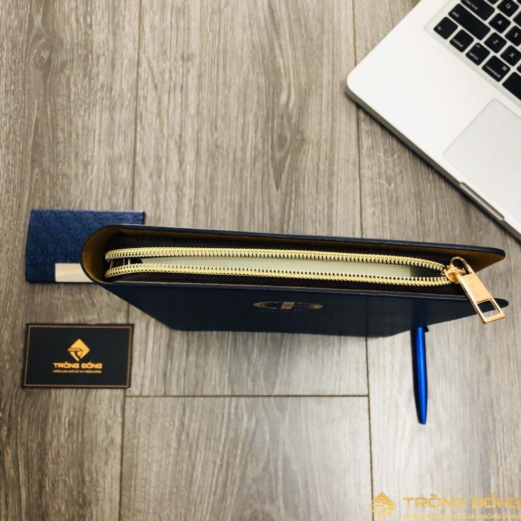 Đây là mẫu sổ da bìa còng 6 lỗ, có khóa kéo được ép nhũ vàng logo PHONGSUBTHAVY GROUP. Sổ tay quà tặng mã 202 với thiết kế ấn tượng và chắc chắn, phần khóa kéo có thể giúp bảo quản bút viết cùng các giấy tờ, tiền bạc cất giữ bên trong một cách tối ưu.