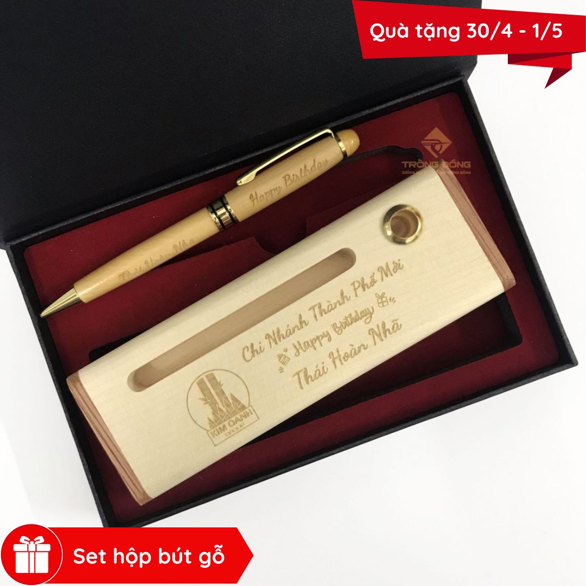 Bộ hộp đựng bút gỗ khắc logo theo yêu cầu