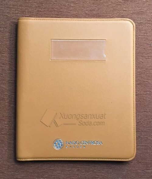 Bìa hồ sơ Hado Centrosa Garden được gia công bằng chất liệu da simili, kiểu bìa đựng hồ sơ may chỉ bên trong bìa gia công với lớp nhung màu đen, mặt bìa ép lún logo > Bìa đựng hồ sơ có khóa kéo đẹp cho doanh nghiệp