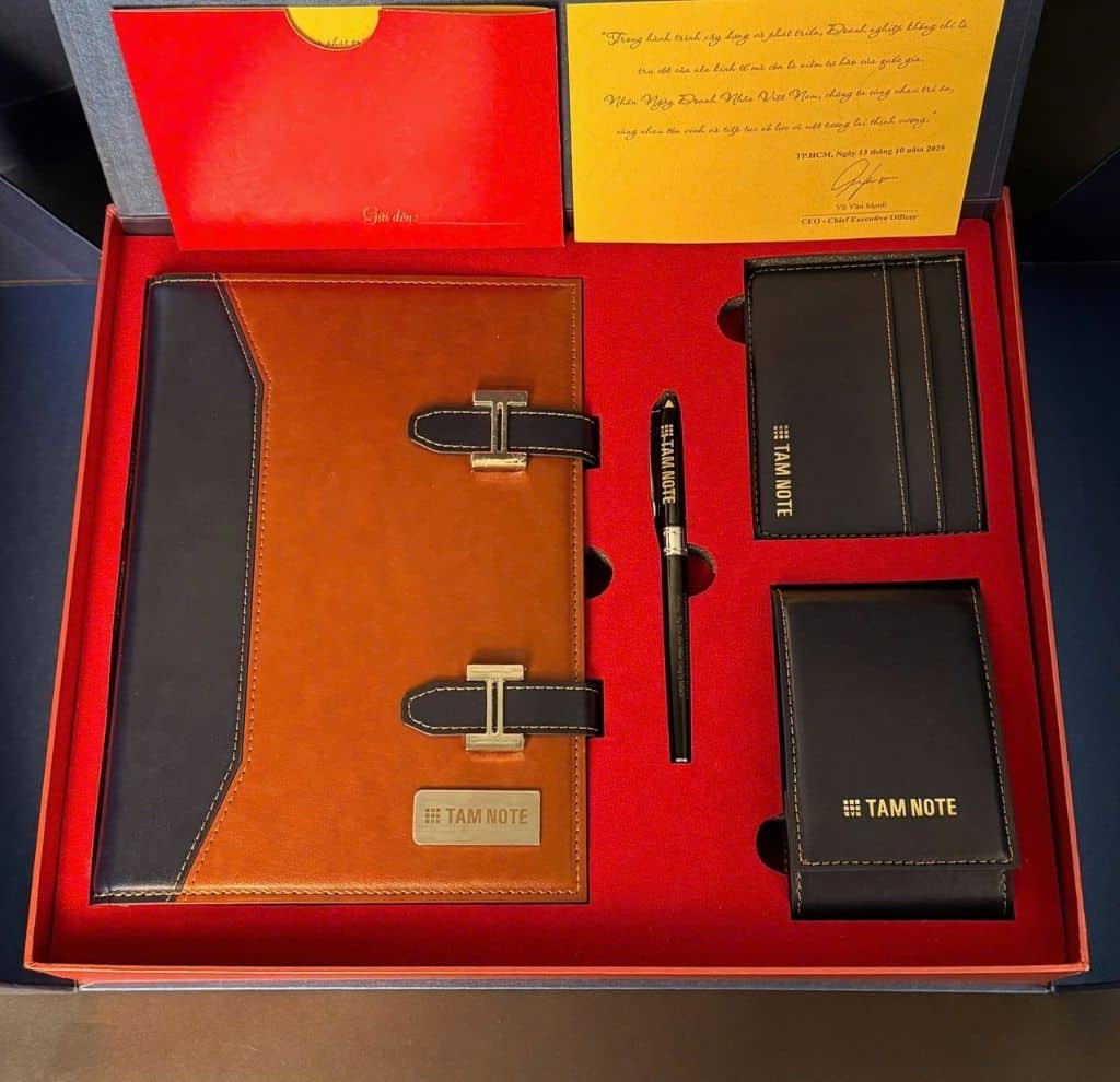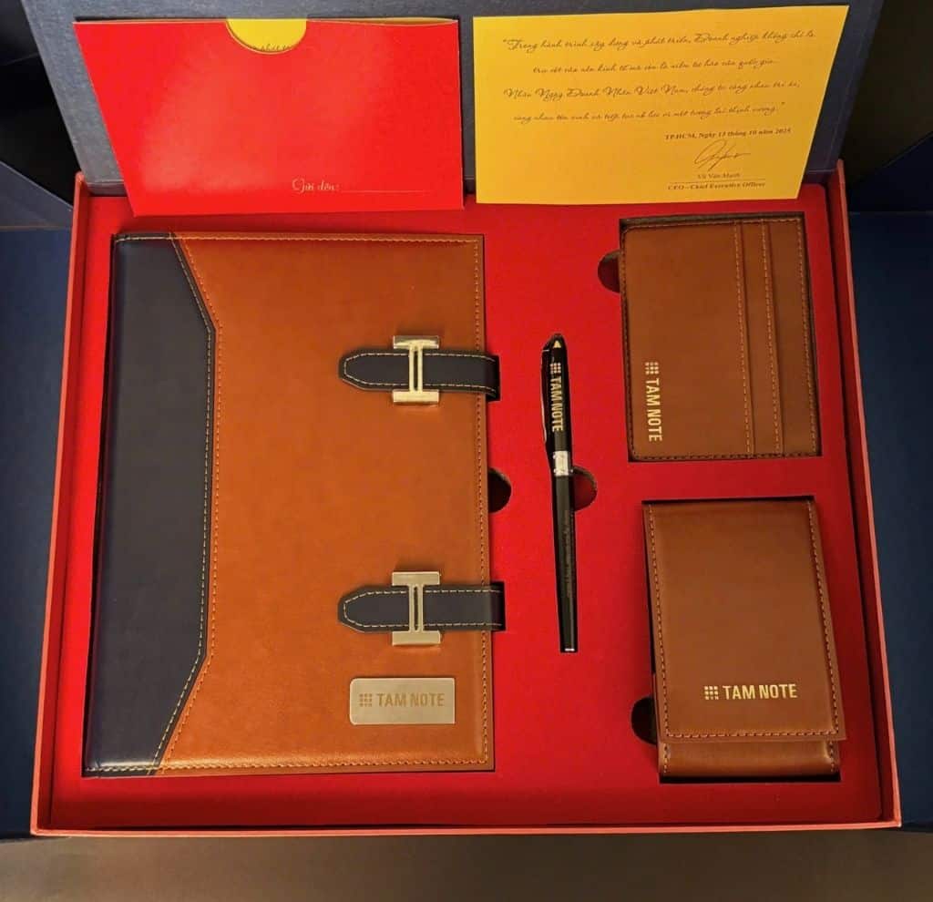 • Sổ tay bìa da (STN01) – Ghi dấu ý tưởng & quyết định quan trọng.