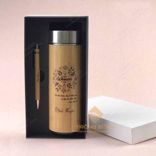 - Combo bộ 2 sản phẩm: 01 bình giữ nhiệt vỏ tre và 01 bút gỗ tre.