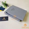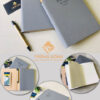 Sổ da dán gáy Meliá Ho Tram 217 được làm từ bìa da PU cao cấp có màu ghi sang trọng và thanh lịch. Phần logo được gia công ép nhiệt trên đầu bìa sổ một cách đơn giản nhưng vẫn sang trọng.