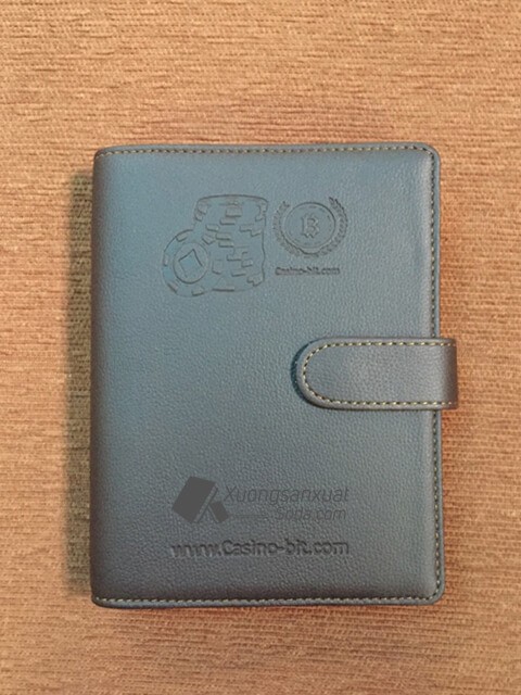 Sổ bìa da Casino-bit được gia công trên chất liệu bìa da Simili cách cẩn thận trên từng chi tiết, sử dụng công nghệ ép lún (ép nhiệt) logo 2 vị trí lên bìa sổ – Sản xuất theo yêu cầu số lượng lớn