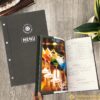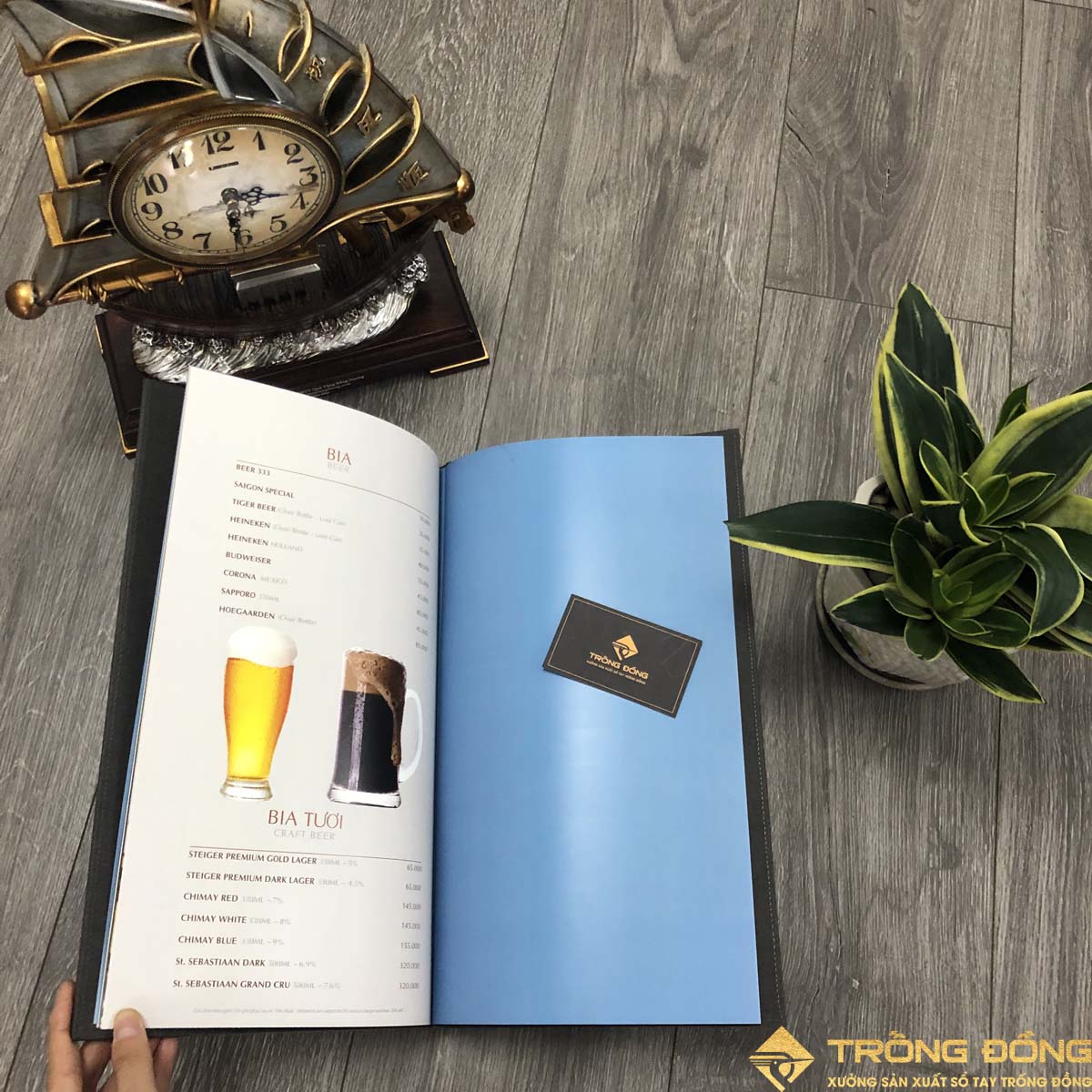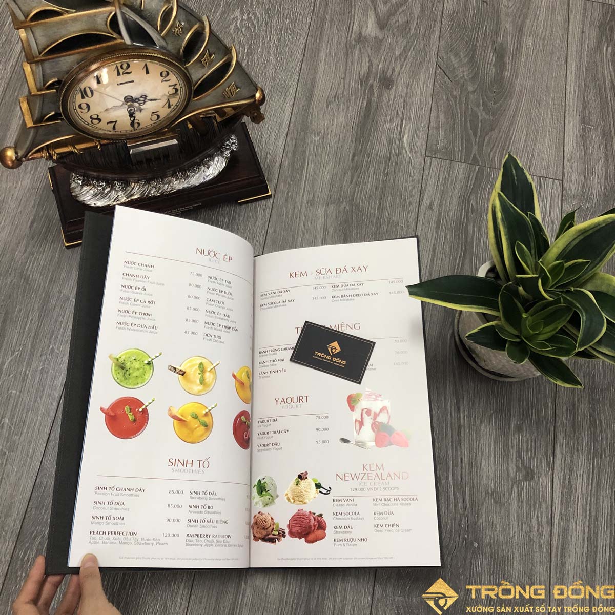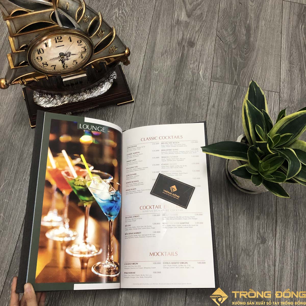 Sử dụng Menu (hay còn được gọi là thực đơn) cho nhà hàng, quán Bar hay những quán cà phê sang trọng là một sự đầu tư vô cùng thông minh và chuyên nghiệp. Với thiết kế bắt mắt, hình ảnh trong sống động, màu sắc ấn tượng, mẫu Menu không thấm nước 212 sẽ giúp khách hàng thích thú với những món ăn được trình bày trong cuốn menu này.