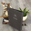 - Logo được in ép kim nhũ bạc (nhấn lún) nổi bật.