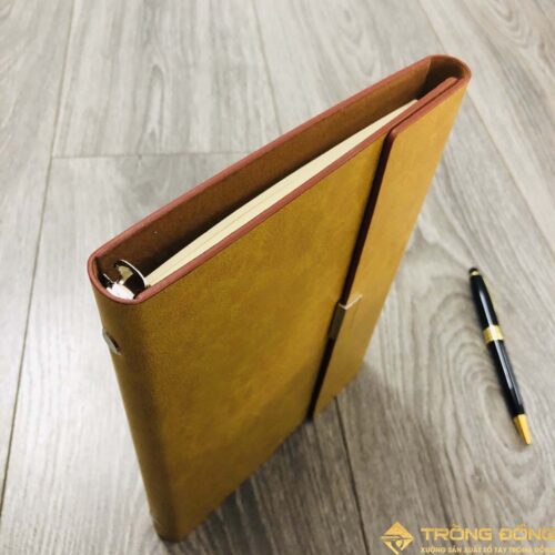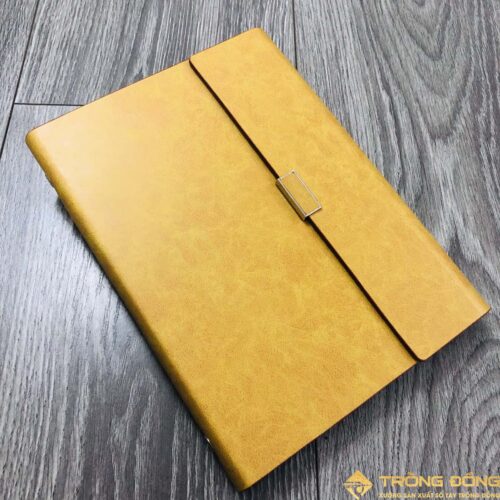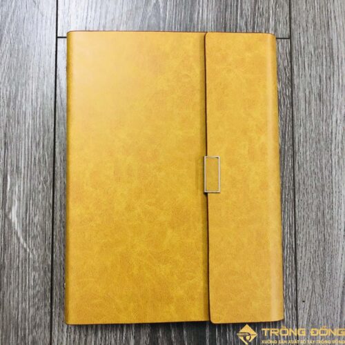 Mẫu sổ bìa da PU có sẵn nắp gập màu vàng cao cấp