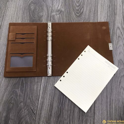 Với phần gáy sổ được sử dụng còng 6 lỗ có thể giúp bạn tháo, lắp hoặc thay thế ruột mới một cách tiện lợi. Ưu điểm của mẫu sổ bìa da có sẵn đó là có thể đáp ứng được những đơn đặt hàng có số lượng ít hoặc nhiều trong thời gian gấp rút của khách hàng. Có nhiều mẫu mã, kích thước, màu sắc, chất liệu để lựa chọn. Đồng thời, chi phí chắc chắn sẽ phù hợp với ngân sách mà bạn đề ra để đặt in logo lên sổ tay.