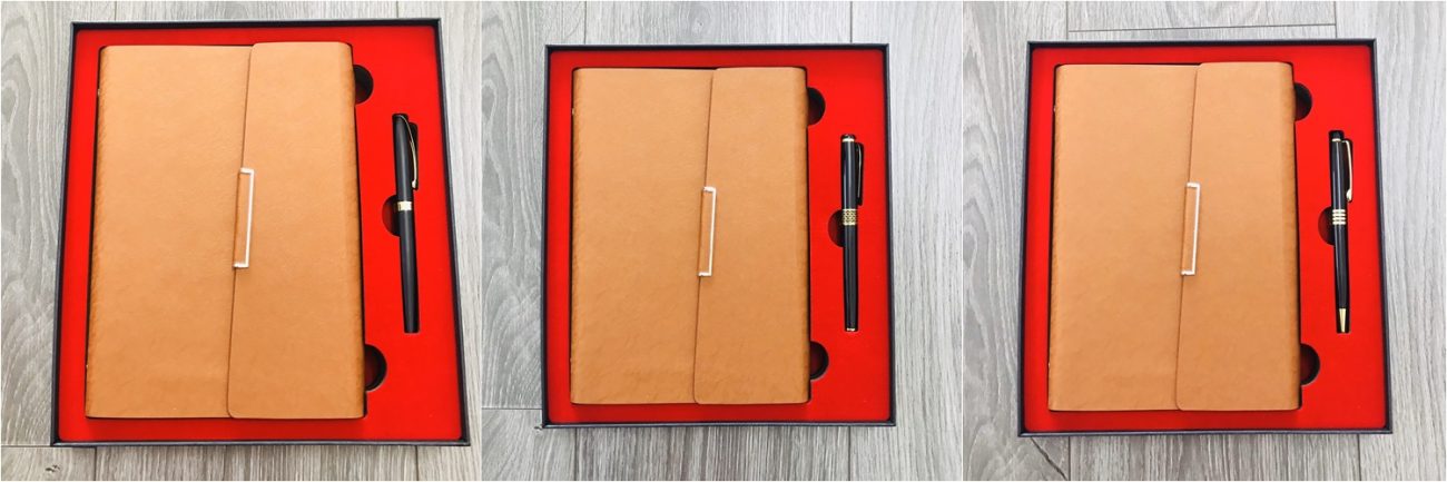 Gợi ý thêm, thay vì chỉ tặng mỗi sổ da thì bạn cũng có thể sử dụng bút bi in hoặc khắc logo đi kèm với cuốn sổ làm thành một bộ giftset quà tặng cao cấp dành tặng cho khách hàng thân thiết của mình. Đặt hàng tại Xưởng sản xuất sổ da Trống Đồng, với đơn hàng bạn yêu cầu số lượng càng nhiều thì giá thành lại càng rẻ, cùng với những ưu đãi, khuyến mại hấp dẫn khác.