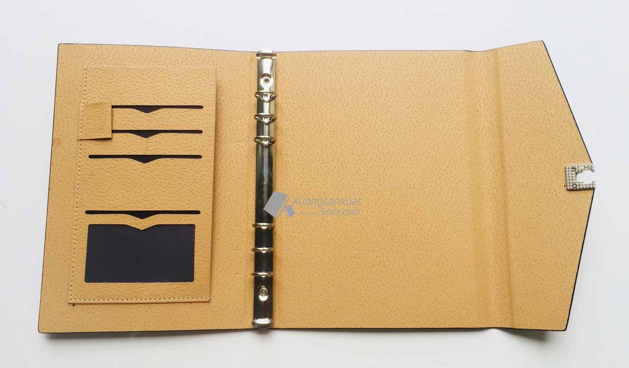 >> Mẫu sổ bìa da Pu màu xanh có 4 mẫu với 3 mẫu khuy kim loại khác nhau và 1 mẫu không có khuy kim loại để khách hàng chọn