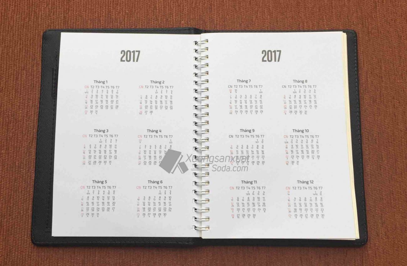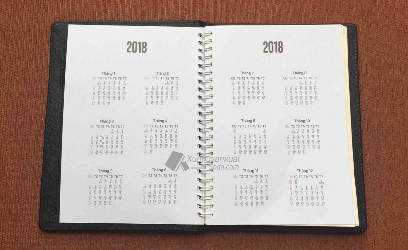 Mẫu sổ da intel những tờ giấy đầu tiên lịch năm, còn phía cuối mới là những tờ để quảng cáo, giới thiệu