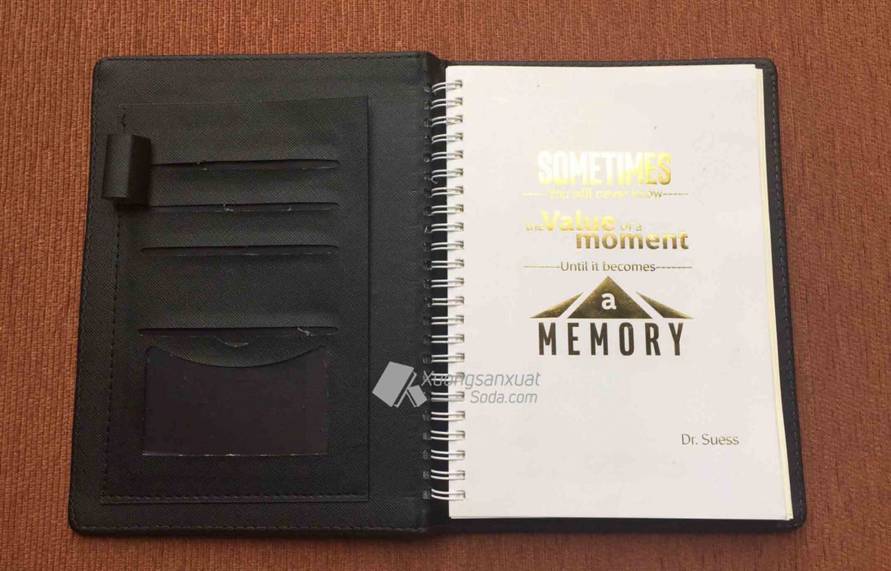 Sổ tay lò xo intel sử dụng chất liệu giả da Simili mềm mại, mang lại cảm giác thoải mái khi sử dụng, để xem mẫu thực tế quý khách tới trực tiếp văn phòng làm việc công ty sản xuất sổ da Hoàng Thiên Vũ, có rất rất nhiều mẫu sổ da để quý khách tham khảo, lựa chọn.