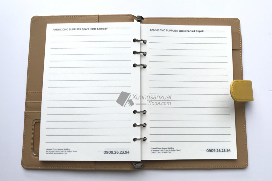 Sổ bìa da quai cài nam châm chất liệu giả da simili tông màu màu – Xưởng sản xuất sổ da Hoàng Thiên Vũ sản xuất theo yêu cầu, với sổ còng 6 lỗ nhận tối thiểu 50 cuốn/đơn hàng