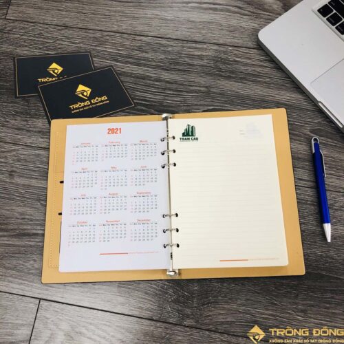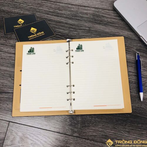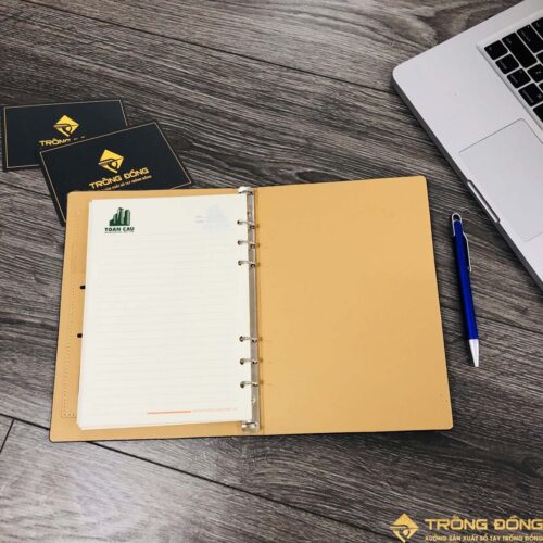 Sổ Da Bìa Còng Ép Nhũ Vàng Logo TOÀN CẦU 209