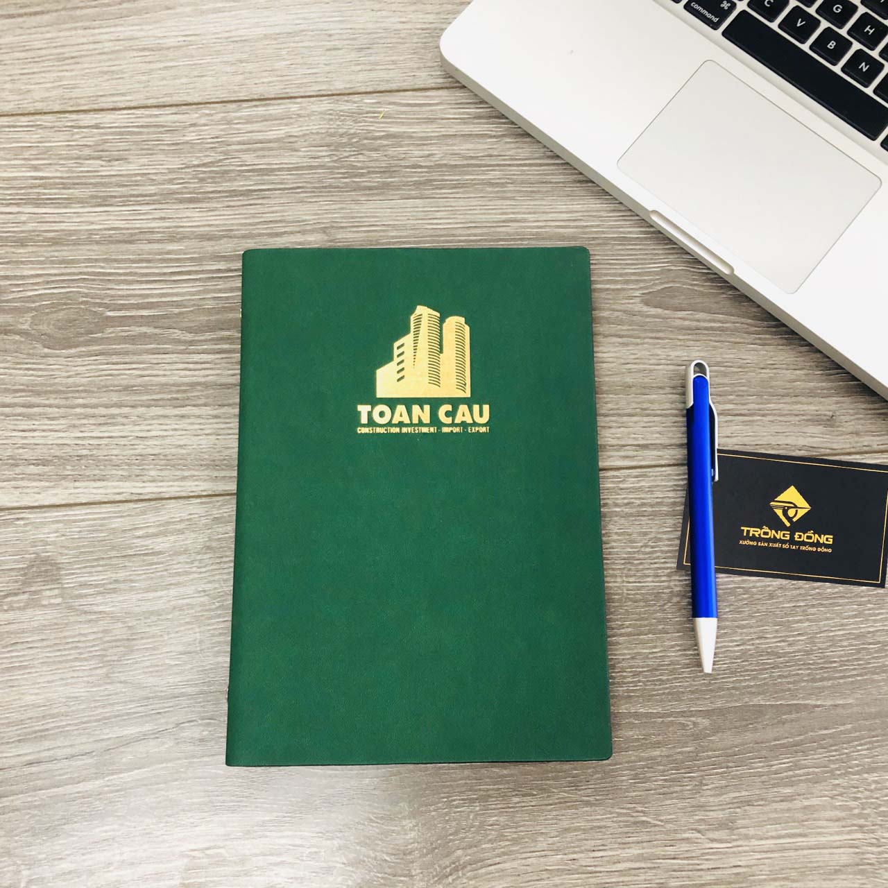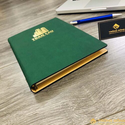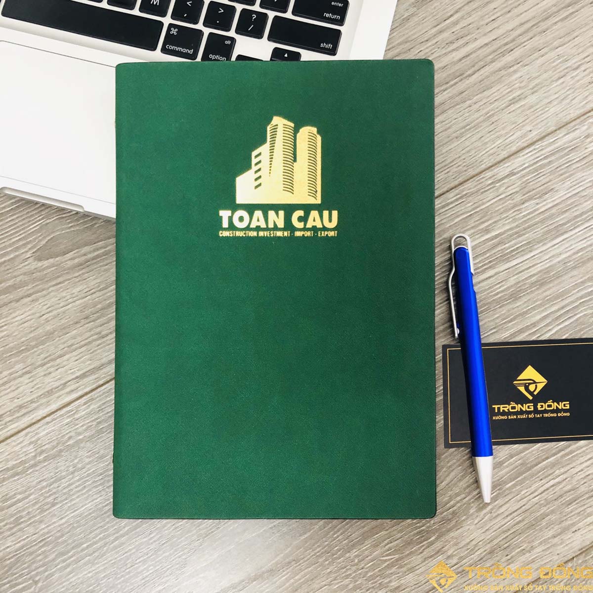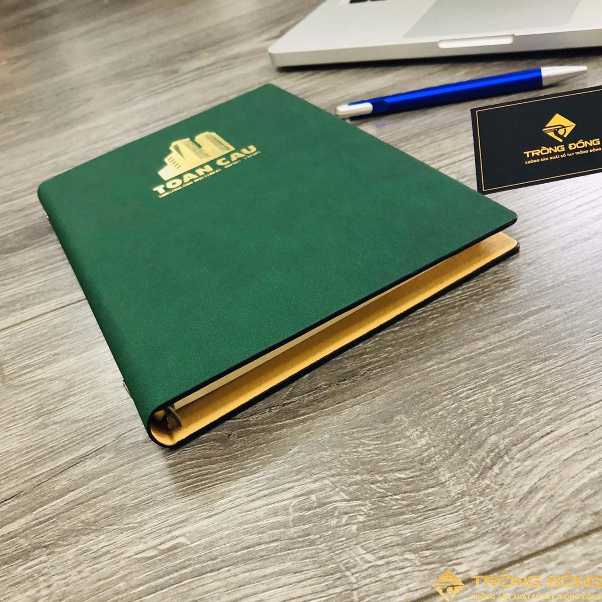 Sổ da bìa còng ép nhũ vàng TOÀN CẦU 209 là mẫu sổ còng 6 lỗ da PU cao cấp, bìa da có vân độc đáo, sang trọng. Logo của Công ty cổ phần xuất nhập khẩu và đầu tư xây dựng Toàn Cầu được ép nhũ vàng trên bề mặt bìa da màu xanh lá một cách nổi bật, làm tăng thêm giá trị của món quà và tầm đẳng cấp của thương hiệu.