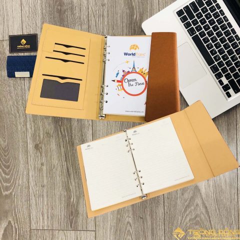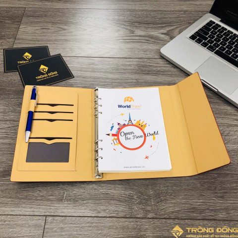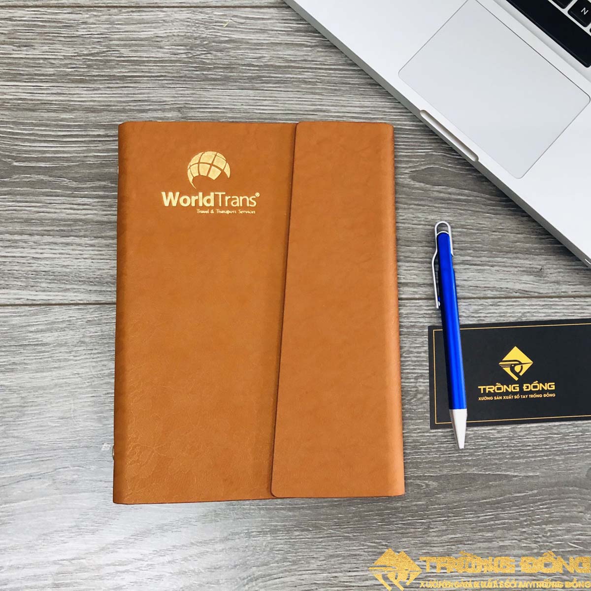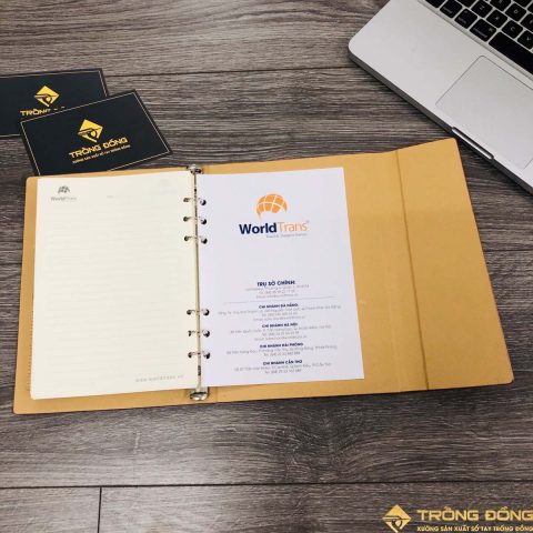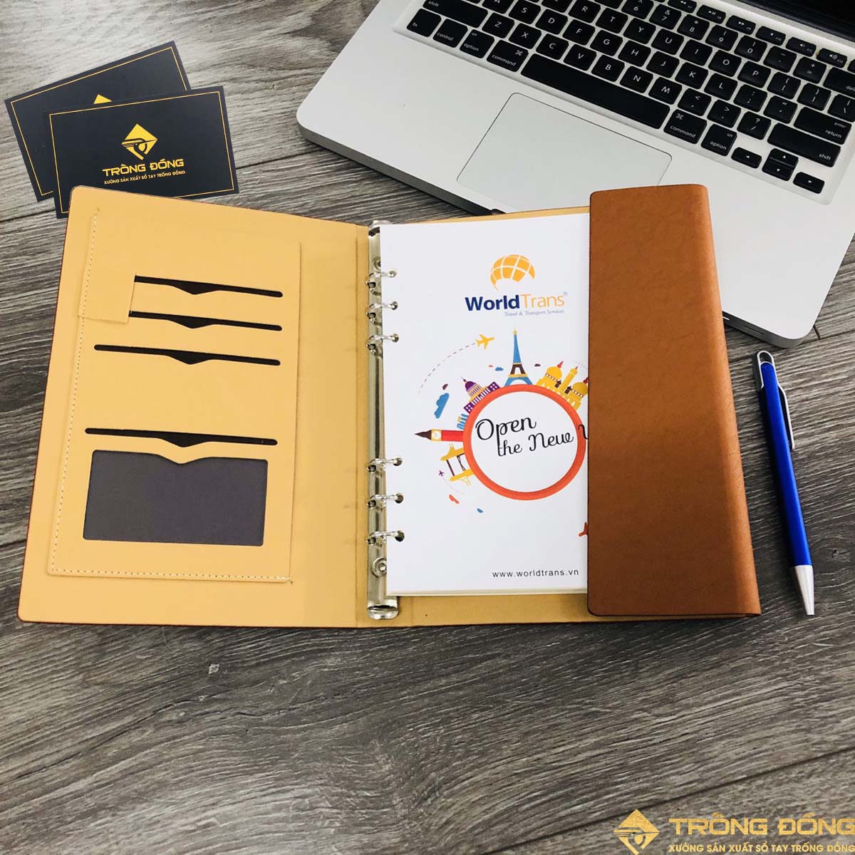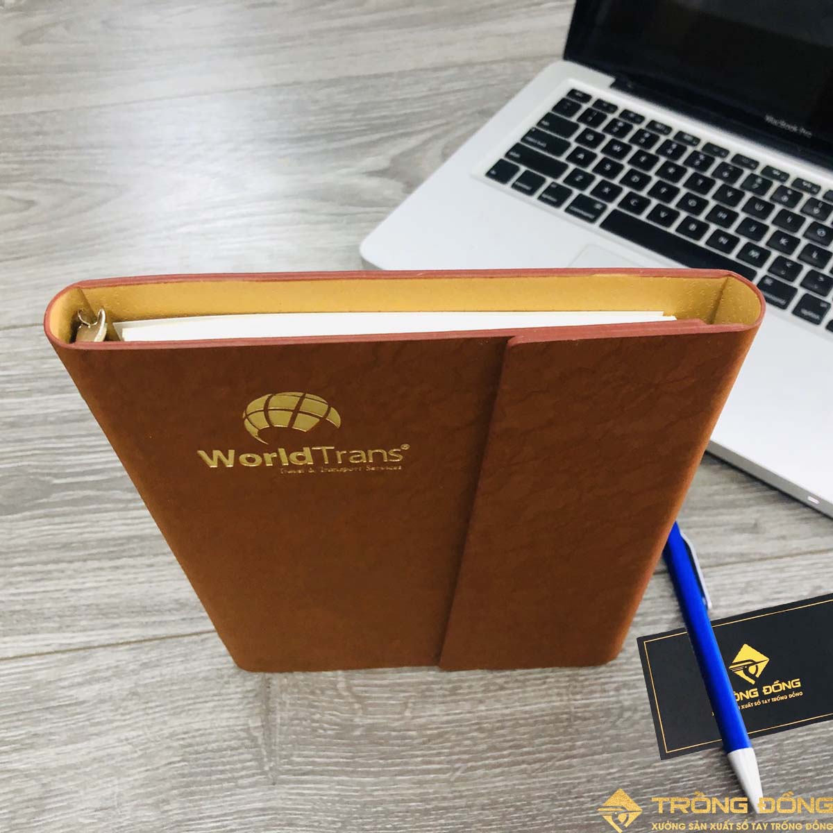 Sổ Da Bìa Còng Ép Nhũ Vàng Logo WorldTrans 210
