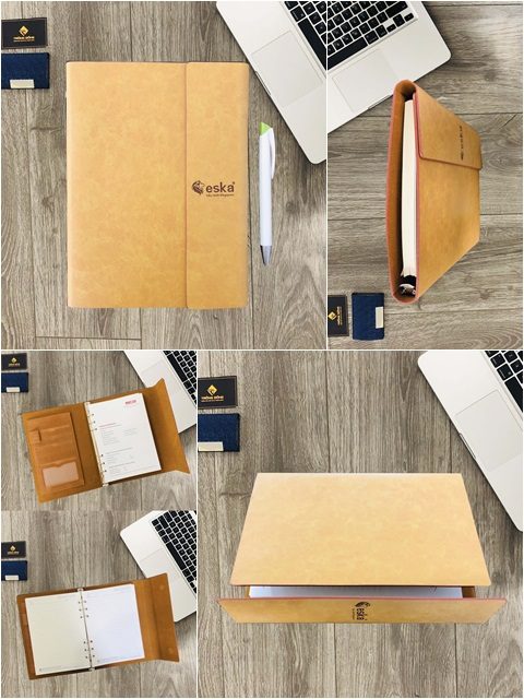 Đặc điểm và hình ảnh tham khảo sản phẩm sổ da bìa còng ép nhiệt logo ESKA 207