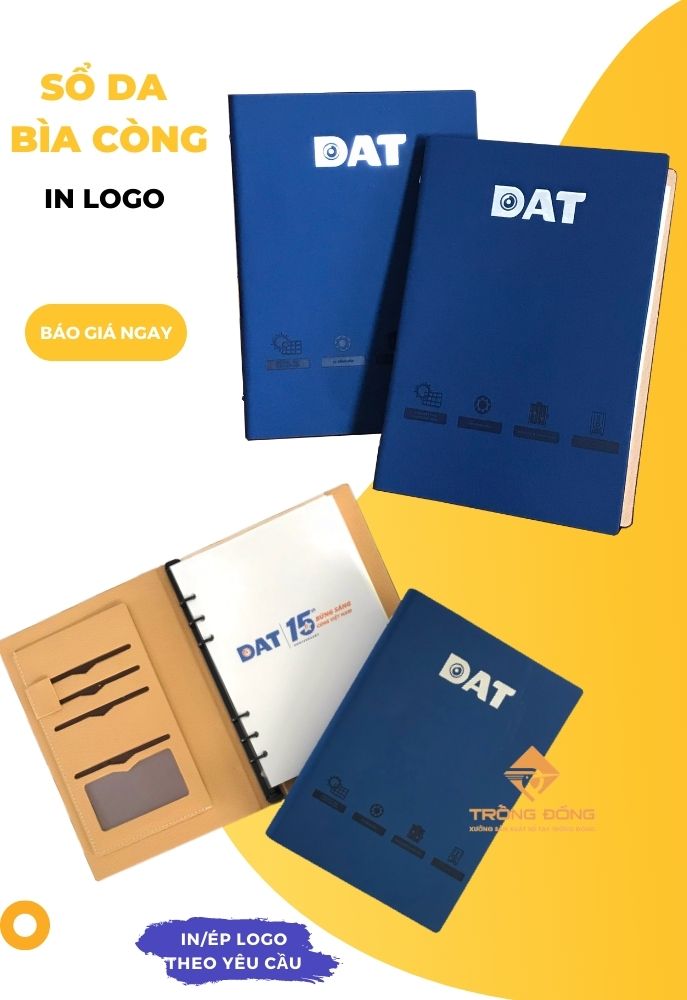 Sổ Da Bìa Còng Màu Xanh Ép Lún Và Ép Nhũ Bạc Logo DAT 225