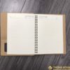 Phần gáy của sổ sử dụng 23 lò xo móc với kích thước nhỏ gọn, thay thế cho chiếc còng inox 6 khoen cồng kềnh. Phần viền sổ được may thủ công một cách khéo léo, với kiểu dáng đơn giản nhưng vẫn toát lên vẻ sang trọng và dễ nhìn.