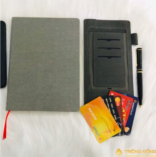 Và để có một chiến dịch marketing hiệu quả thì không thể thiếu đi những quà tặng quảng cáo in logo doanh nghiệp. Với chất da leather PU, mềm mịn và bóng bẩy, tông màu xám của bìa sổ có thể làm nổi bật hình ảnh logo và thương hiệu của doanh nghiệp hơn.