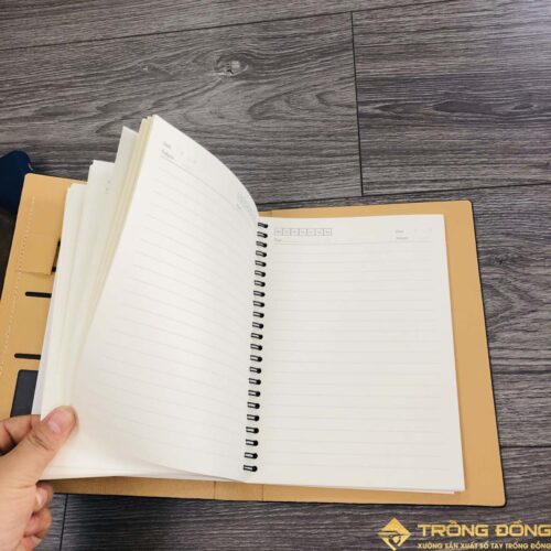 Tuy nhiên, mẫu sổ bìa còng vẫn được chiếm ưu thế hơn trong việc dễ dàng thay thế ruột giấy bên trong hơn sổ lò xo móc. Điển hình như mẫu sổ này, bạn không thể tự thay thế ruột tại nhà mà phải đến tận cửa hàng để họ thay ruột cho bạn. Khi mở ra, mặt trái của bìa sổ trước sẽ có các ngăn đựng thẻ ngân hàng, thẻ tên, name card, giắt bút cực kì nhỏ gọn và tiện lợi.