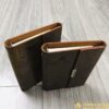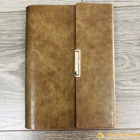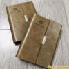 Phần bìa da PU màu nâu đất giả vân tự nhiên và phần bìa gập được gắn thêm nẹp kim loại trang trí sang trọng và lịch lãm. Với thiết kế nhỏ gọn, đây là mẫu sổ phù hợp cho việc bỏ túi xách, cầm tay mang theo bên người, dễ dàng sử dụng.