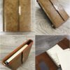 Xung quanh cạnh sổ được lăn sơn một cách khéo léo và tỉ mỉ. Bên trong mặt trái của bìa sổ được bồi thêm một lớp nhung màu nâu và các ngăn phụ có thể chứa thẻ tín dụng/name card, giấy tờ cá nhân, quai cài bút.