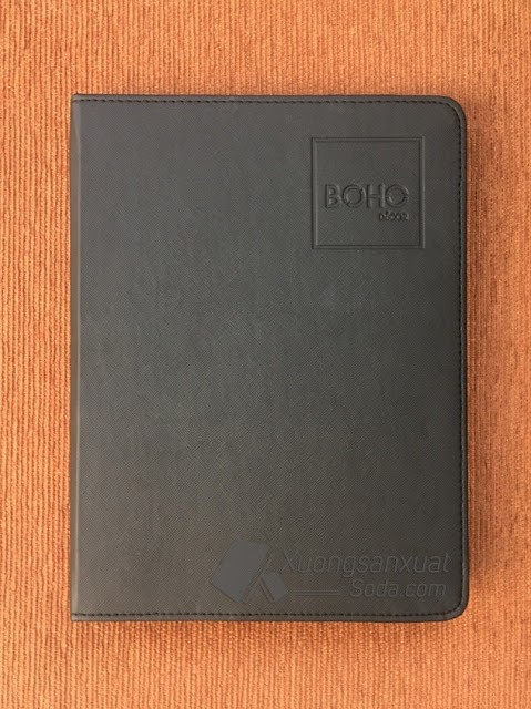 Giới thiệu mẫu sổ da quà tặng của BOHO Décor sản xuất sổ da Hoàng Thiên Vũ thực hiện theo quy cách sổ lò xo bìa da, cuốn sổ là kết hợp của loại sổ tay tiện dụng nhất (sổ lò xo) và chất liệu bìa da simili cao cấp. Bìa sổ được làm rất chắc chắn, kiểu bìa da may chỉ, miếng da simili bên ngoài và lớp nhung màu đen bên trong may với nhau bằng chỉ may màu đen