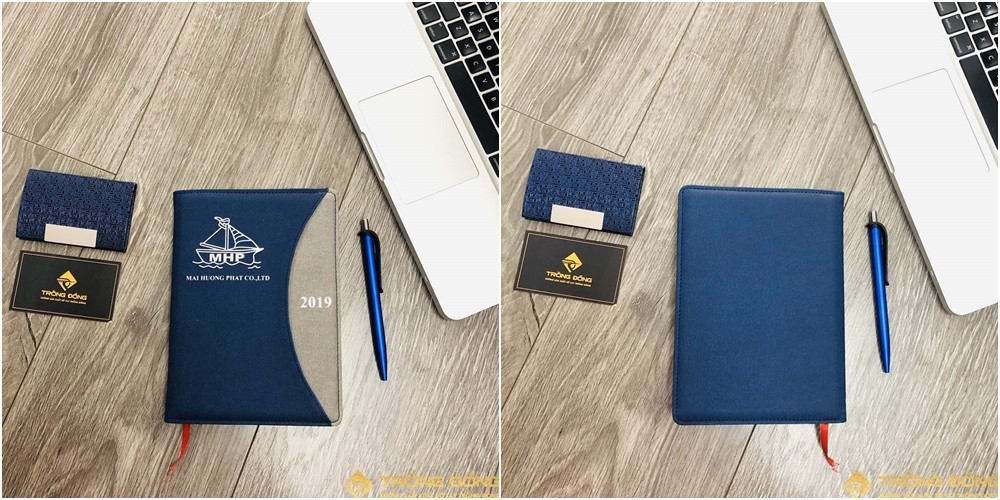 Công ty TNHH Mai Hương Phát đã lựa chọn mẫu sổ tay lò xo bìa da của chúng tôi để làm in logo thương hiệu là quà tặng cuối năm cho khách hàng. Logo của doanh nghiệp được ép nhũ bạc sang trọng lên bìa da của sổ.