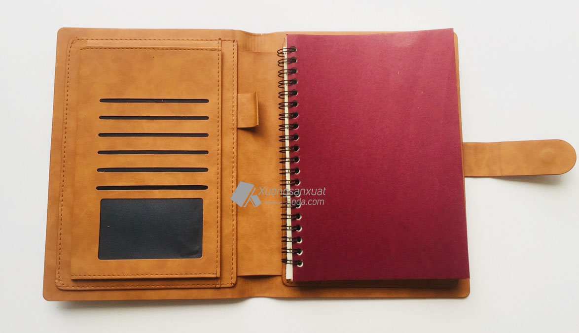 Mẫu sổ tay lò xo bìa da cao cấp, bên ngoài chất liệu giả da simili rất đẹp được gia công bằng lăn sơn cạnh ép logo sắc nét, bên trong ruột sổ lò xo nhét vào bìa da tạo nên một trong những mẫu sổ tay lò xo bìa da cao cấp.