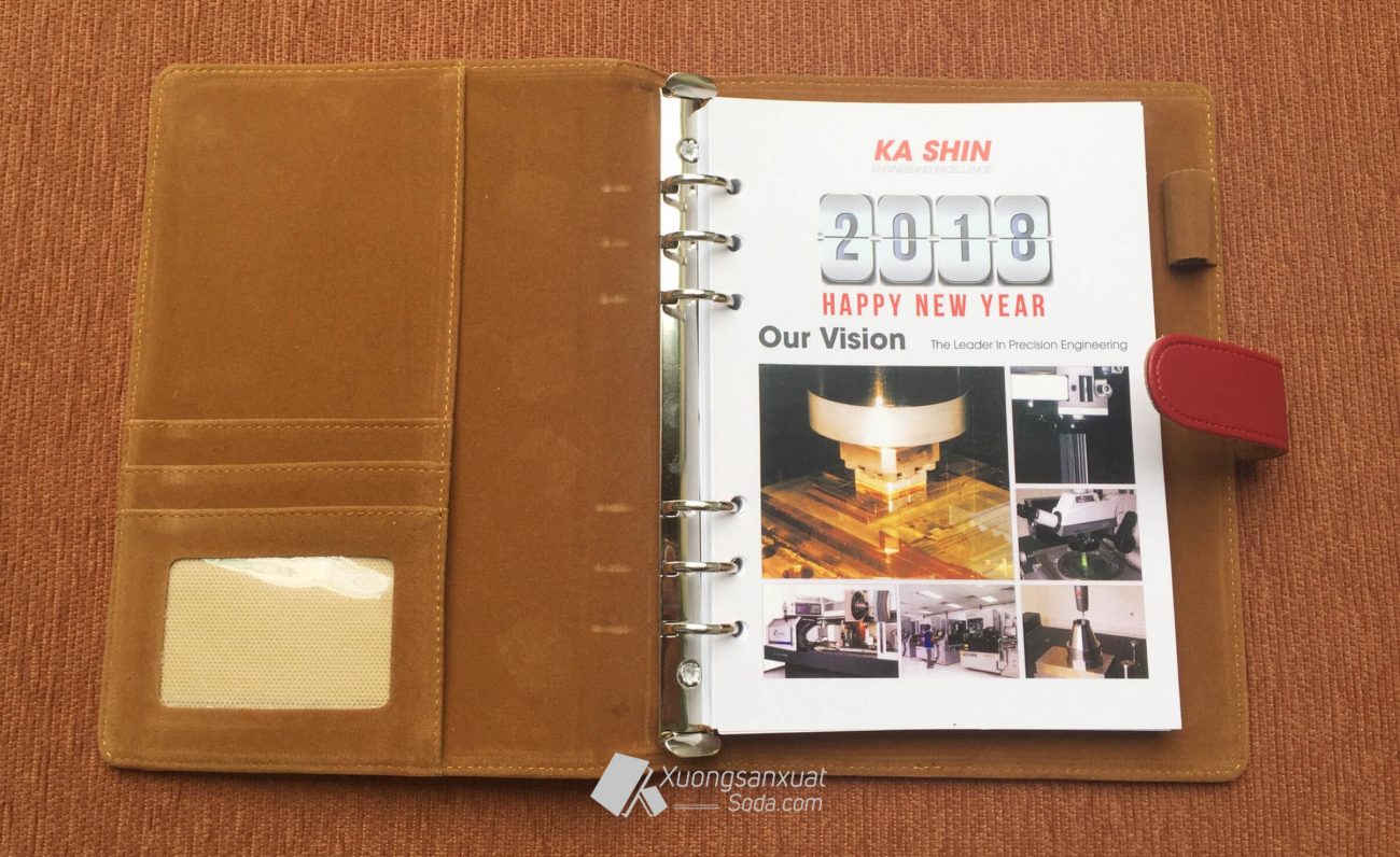 Sổ tay bìa da KA SHIN sản xuất tại Xưởng bìa da Hoàng Thiên Vũ, sản xuất theo yêu cầu.