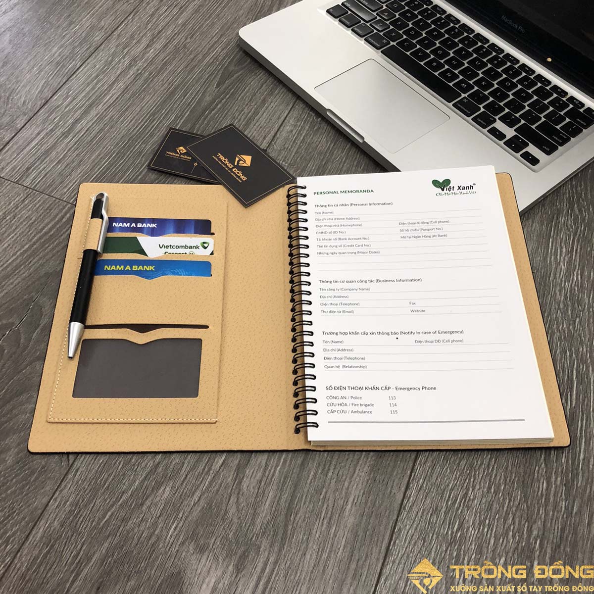 Sổ tay lò xo in logo là sản phẩm thông dụng và nhiều công ty sử dụng để làm quà tặng doanh nghiệp, đối tác, khách hàng, nhân viên. Nếu quý khách đang có nhu cầu đặt in sổ tay lò xo bìa da, hãy liên hệ ngay với Xưởng sản xuất sổ da Trống Đồng được được tư vấn cụ thể và chi tiết nhất.