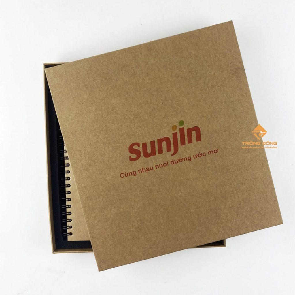 - Hộp giấy đựng sổ: In logo theo yêu cầu.