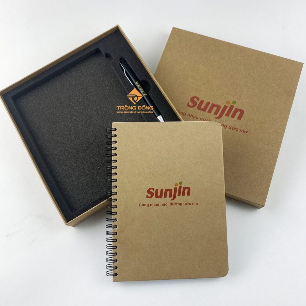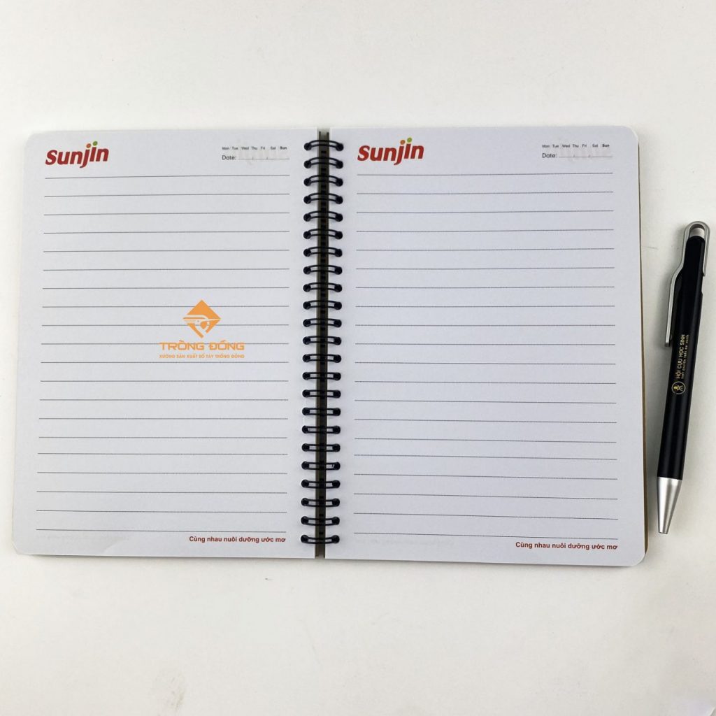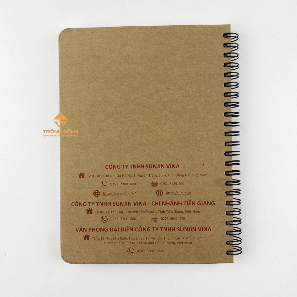 Dưới đây là hình ảnh cuốn sổ tay lò xo mà Xưởng sản xuất sổ da Trống Đồng đã thực hiện cho công ty Sunjin.