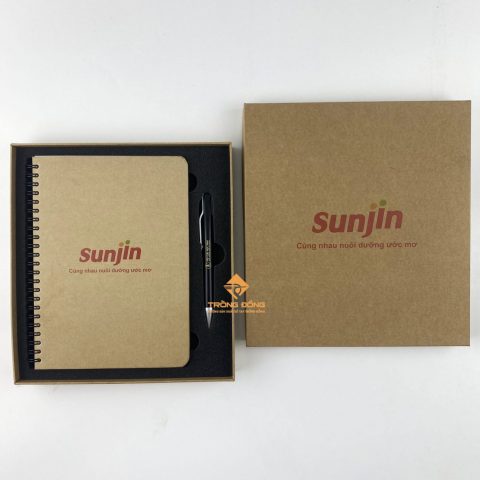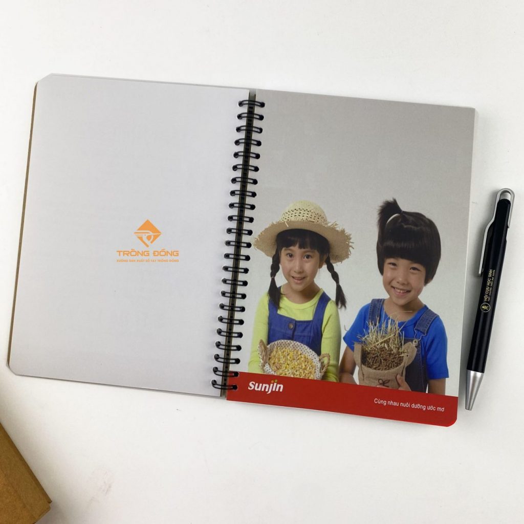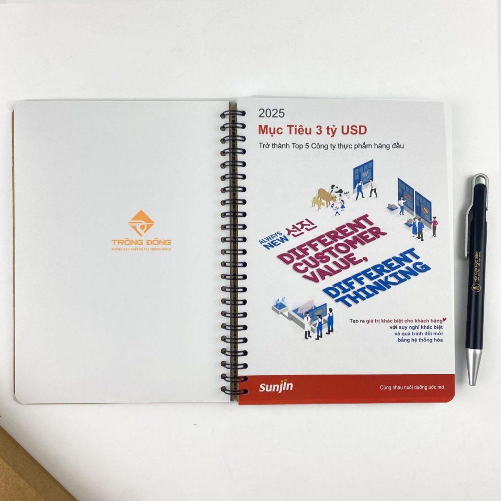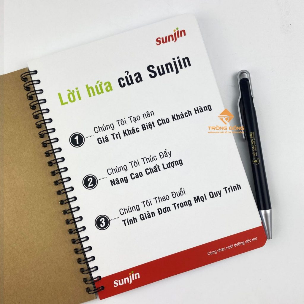 Dưới đây là hình ảnh cuốn sổ tay lò xo mà Xưởng sản xuất sổ da Trống Đồng đã thực hiện cho công ty Sunjin.