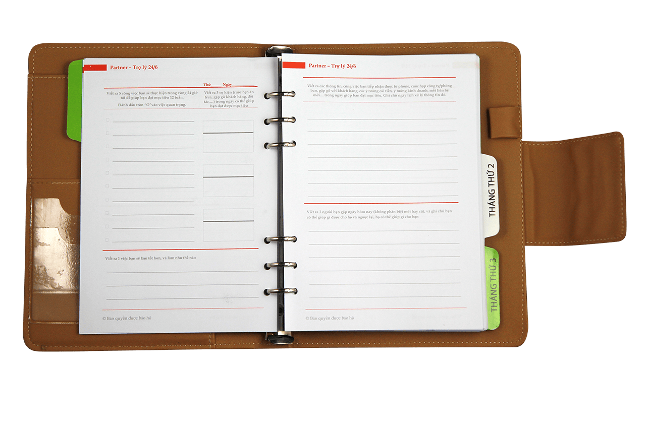 – Đặc biệt sổ được chia làm 3 phần nhờ một tờ pvc mỏng phần cách và ghi thêm các phần sổ ghi cho công việc,,,,,,