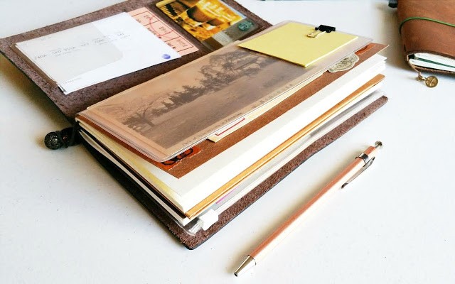 Sổ tay Midori Traveler’s Notebook (Sổ tay bìa da Midori) gồm 1 miếng bìa da, một dây cao su giữ sổ và một đến ba (thậm chí hơn) tập giấy rời, khi nào sử dụng hết giấy, chỉ cần bỏ ra rồi kẹp giấy mới vào. Sổ là món đồ ưa thích của rất nhiều người thích viết sổ tay trên toàn thế giới.