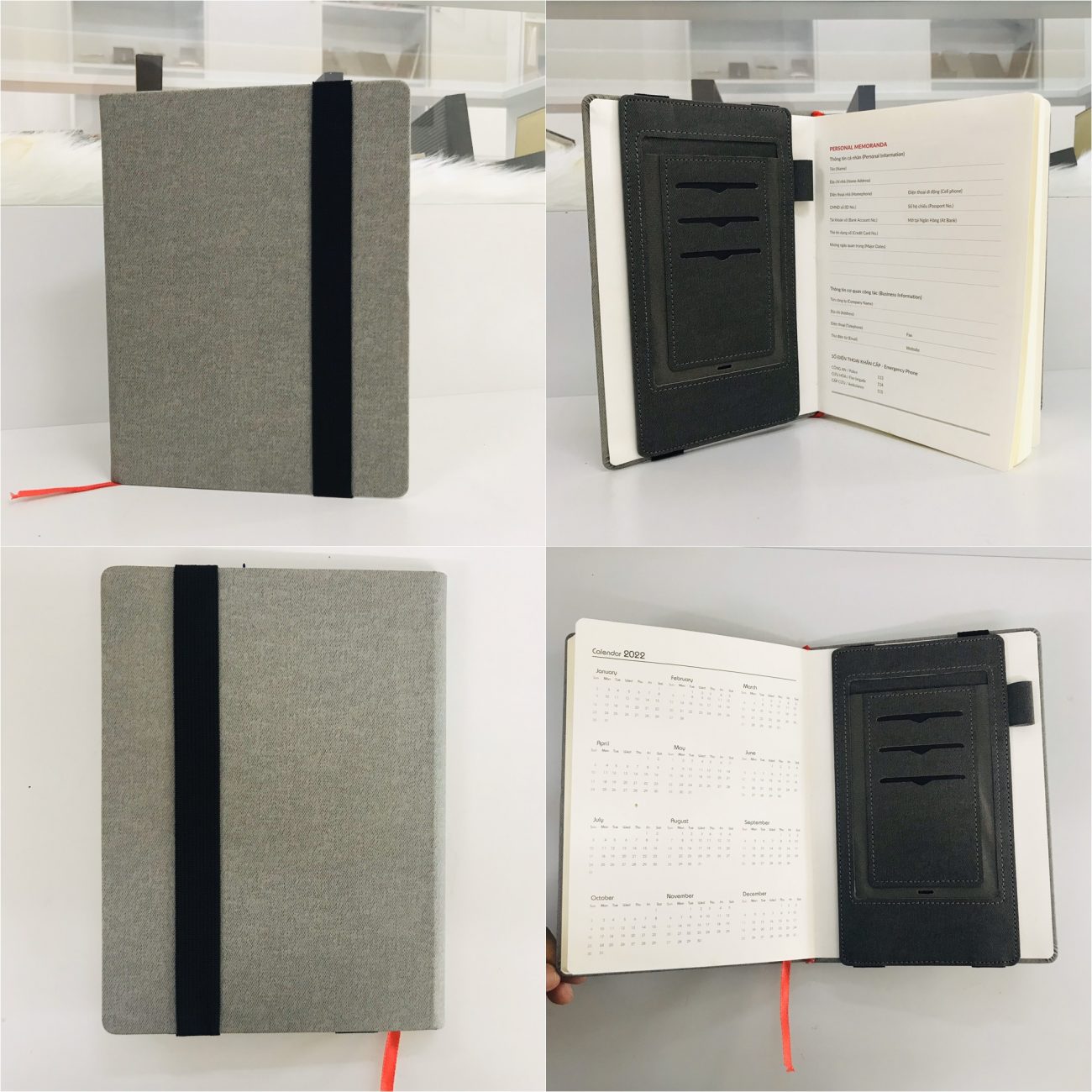 – Có tích hợp ngăn đựng card visit, thẻ visa, quai cài bút…